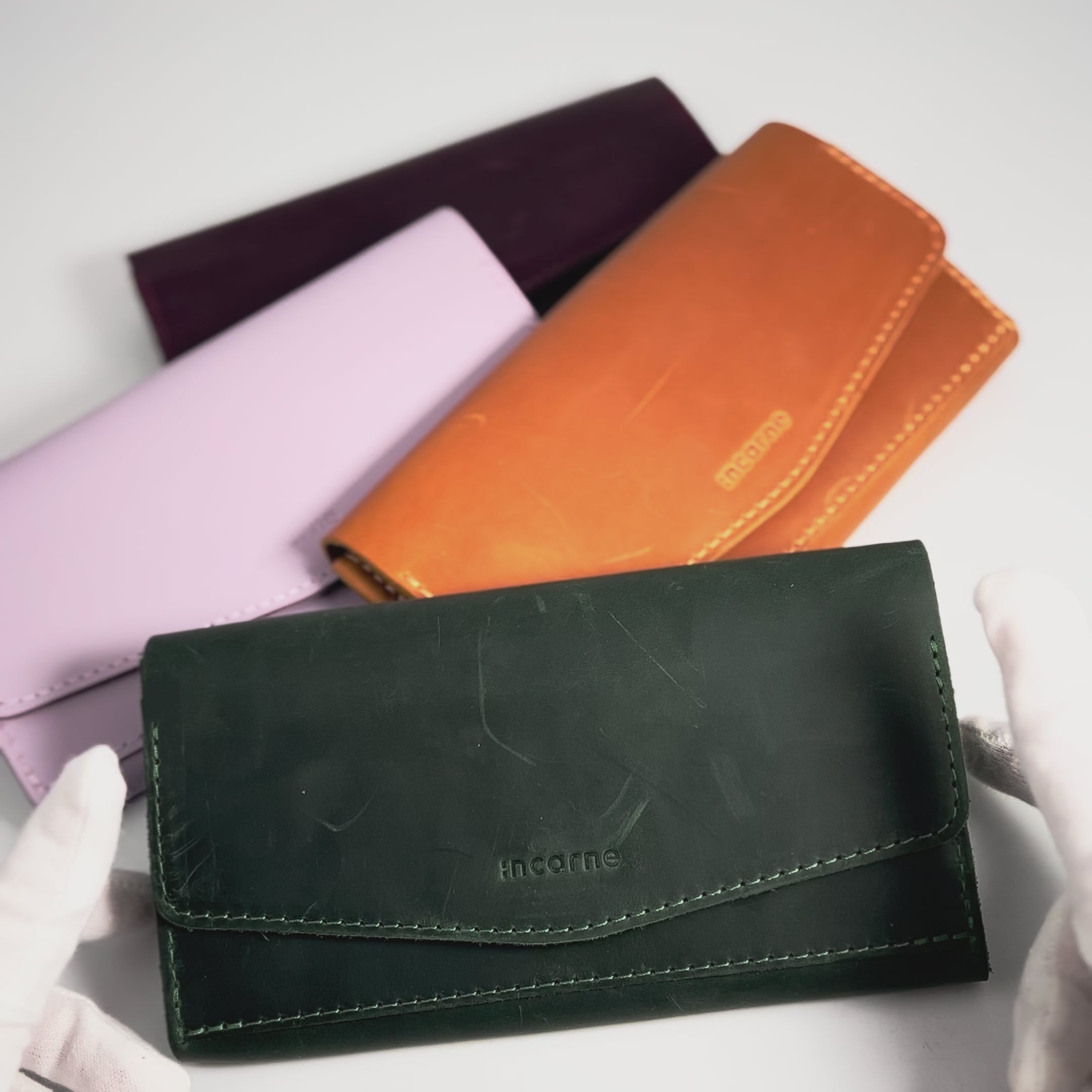 The updated design of the wallet features the INCARNE™ logo embossed on the front side, as depicted in photo #1.