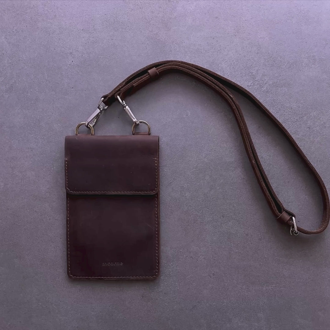 Komfortowa skórzana torba na telefon Smart Case to stylowy i praktyczny dodatek wykonany z naturalnej skóry vintage w kolorze koniaku. Model ma minimalistyczny design, pojemną główną komorę z 3 kieszeniami oraz dodatkową zewnętrzną kieszeń na karty. Bez problemu pomieści smartfony dowolnego rozmiaru, w tym iPhone 14 Pro Max i iPhone 15 Pro Max, a także dokumenty, klucze i inne codzienne niezbędniki.